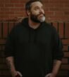 A group of people dressed in traditional attire participate in a cultural event. They are playing musical instruments, including drums, and some are wearing white clothes with red stripes and headgear adorned with feathers. The background features a few people and loudspeakers attached to a utility pole.